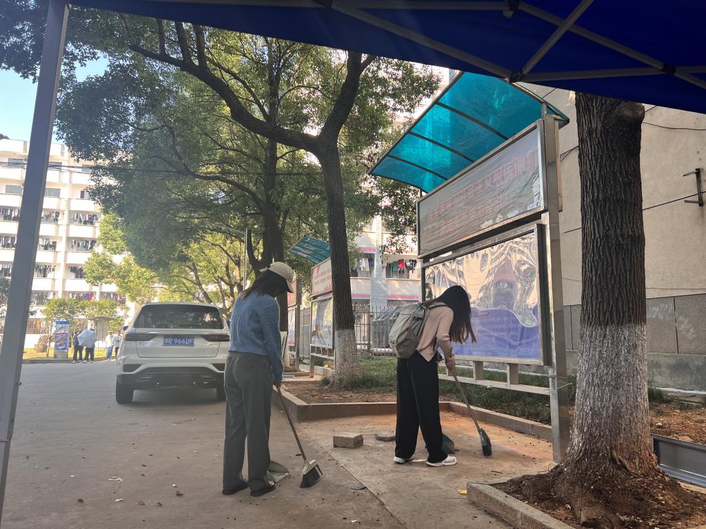 开展“一实践”,带头示范。各支部组织学生党员前往学院实践劳动教育基地开展公益劳动。同志们发扬不怕脏、不怕累的优良作风,认真细致地清扫西苑食堂周边角落,确保卫生不留盲区和死角,党员们纷纷变身为“志愿红”,用“党旗红”守护着学校的“平安绿”。为创建整洁、文明、和谐的校园环境贡献了自己的力量,以实际行动诠释了中国共产党员的先锋模范作用。