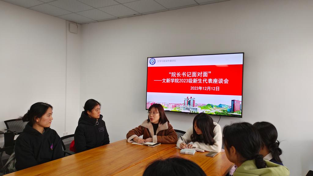 为了解学院同学在学习活动、日常生活及发展前景等方面存在的问题,12月12日下午,文新学院在九教院团委学生会办公室开展“院长书记面对面——2023级新生代表座谈会”。院党委副书记刘莎、23级辅导员李婵出席本次座谈交流会,学院12名新生代表参加会议。