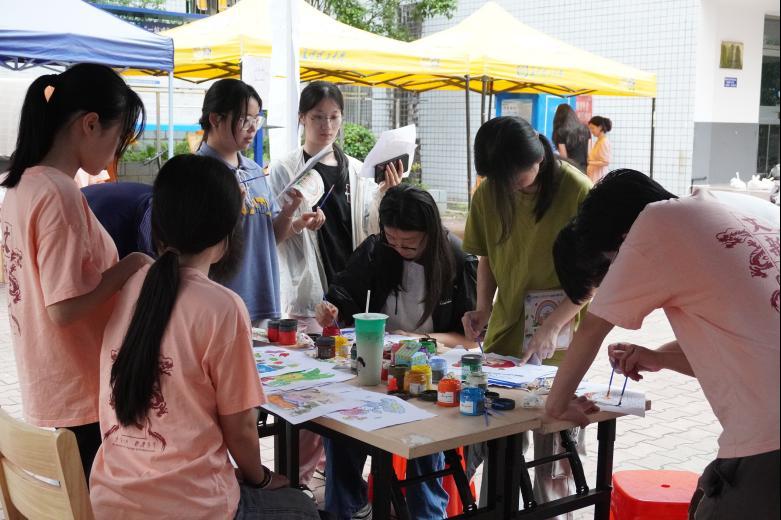 为增进同学们对于心理健康知识的认知,提升积极心理体验,5月6日下午,文新学院在金盆岭校区西苑四号宿舍楼前坪开展第二十二届“525”心理健康教育系列活动之“文趣交织,青春共绘”趣味心理游园会活动,学院心理辅导员李婵到场指导。