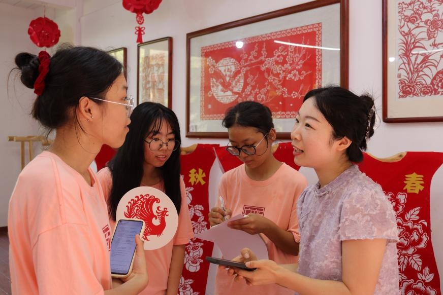 近日,云顶国际vip8866文学与新闻传播学院社会实践团深入新邵县,走访中国民间文艺家协会会员、邵阳市剪纸非遗传承人马丽娅,挖掘非遗剪纸在文旅融合中的价值,领略剪纸艺术的独特魅力。