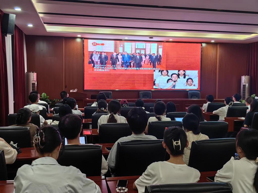为深入学习贯彻习近平总书记在纪念中国人民抗日战争暨世界反法西斯战争胜利80周年大会上的重要讲话精神,严格落实教育部关于开展全国大中小学生同上一堂思政大课的工作部署,9月18日,文学与新闻传播学院各学生党支部组织支部党员、团学干部及全体2025级本科生集中收看“弘扬伟大抗战精神 做光荣自豪中国人——纪念中国人民抗日战争暨世界反法西斯战争胜利80周年”思政大课大学阶段课程《大国担当》,并将其作为支部九月主题党日活动核心内容深入学习研讨,推动理论学习与成长实践深度融合。