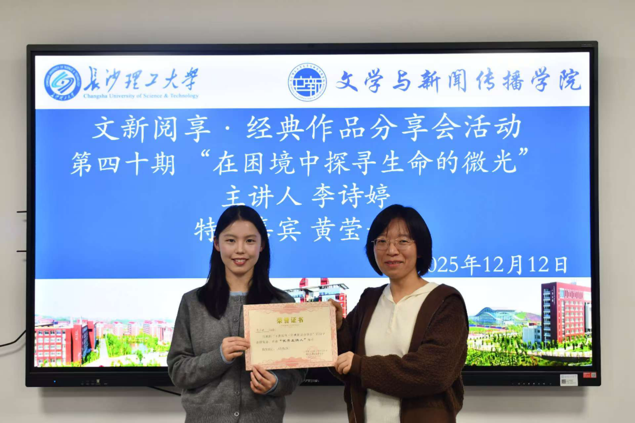 12月12日晚,文新学院第四十期“文新阅享·经典作品分享会”在金盆岭校区九教223团体成长辅导室顺利举行。本期分享会由汉语言2404班李诗婷主讲,以“在困境中看见生命微光”为主题,深度解读大江健三郎经典作品《个人的体验》,中文系黄莹老师受邀作为特邀嘉宾,与同学们共赴一场关于生命、选择与成长的文学对话。