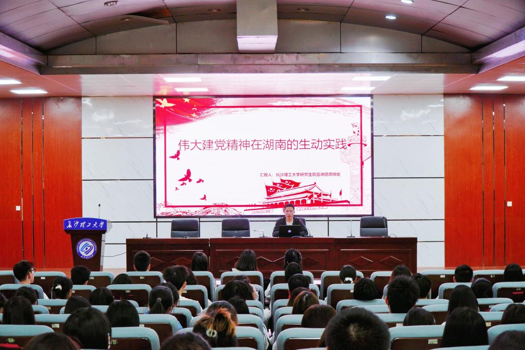 湘籍共产党人在求索和追寻中熔铸、在奋斗和牺牲中砥砺、在奉献和担当中淬炼,为伟大建党精神的熔铸留下了不可磨灭的湖湘印记。研究生宣讲团成员周明炬以“伟大建党精神在湖南的生动实践”为题将“坚持真理、坚守理想,践行初心、担当使命,不怕牺牲、英勇斗争,对党忠诚、不负人民”的伟大建党精神的丰富内涵深刻传达给每一位青年学生。