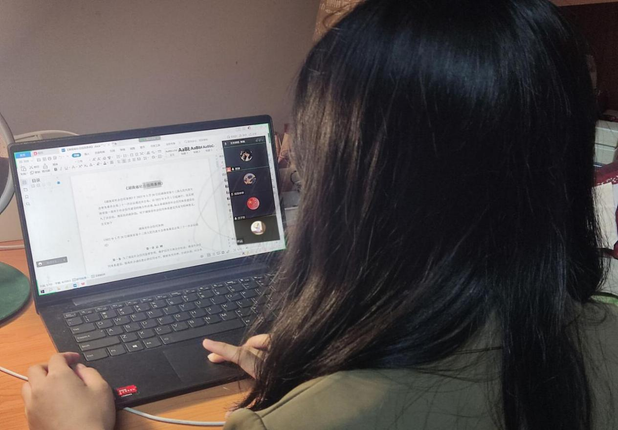 (汉语言2004班举行线上班会,班会主持人夏颖同学正在进行讲解)