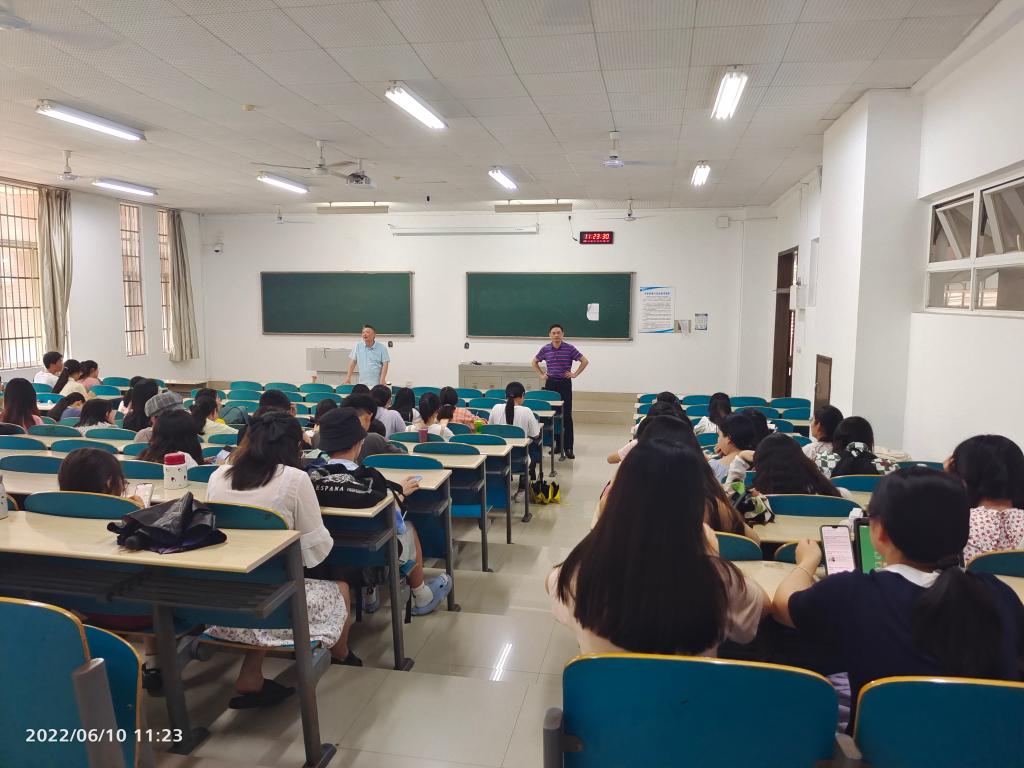即将步入大四的2019级学子们马上迎来人生重要节点。为帮助学生了解当前形势、未来方向,树立正确的考研与就业观念,6月8日--6月9日,文新学院2019级考研就业指导会分别在文科楼B300和综合教学楼A107召开,文新学院副院长魏桃初、周云鹏,汉语言文学系主任郑劭荣,学工办主任楚艳鸽参加。