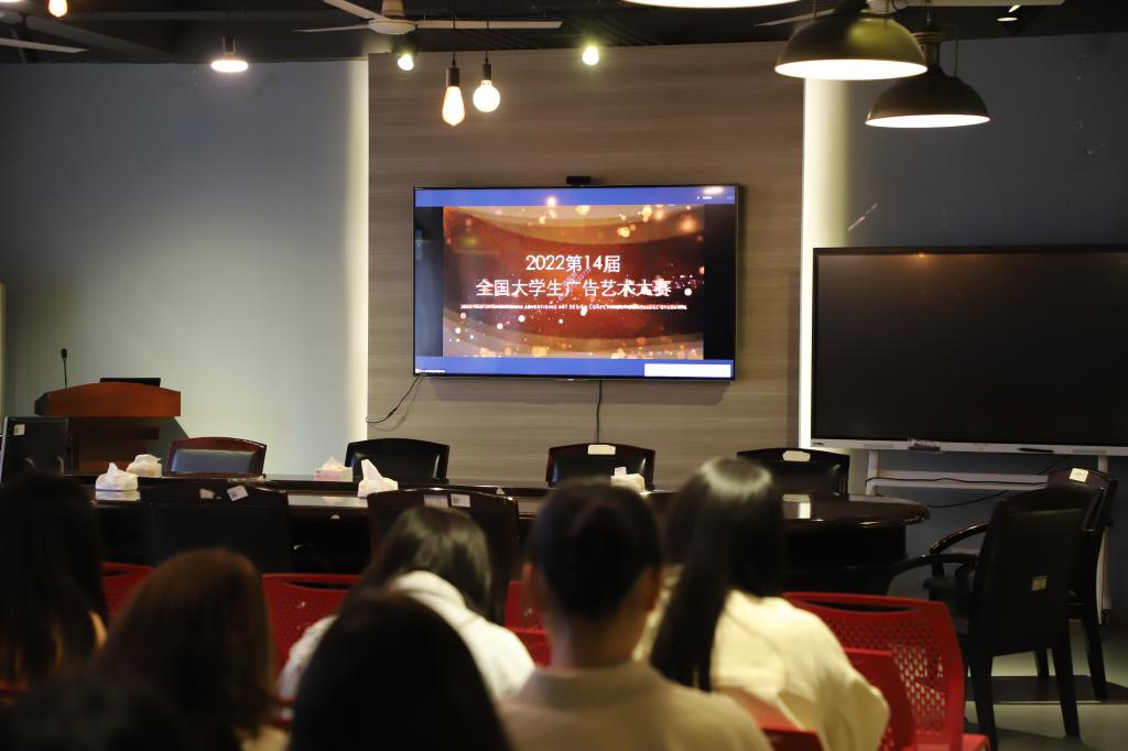 为了更专业地对大广赛参赛学生提供赛事辅导,确保参赛团队创作出高水平作品,2022年5月19日下午2点,文学与新闻传播学院组织学生在文科楼B501集体观看第14届全国大学生广告艺术大赛湖南赛区名家名师创意巡讲直播。