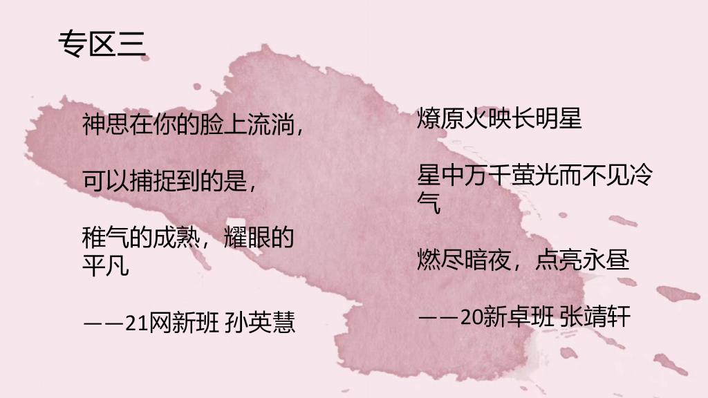 本次大赛面向文新学院全体学生,旨在以创作三行情诗的形式,让同学们表达爱的心声。大赛分有“诉真情”、“青年说”、“战疫情”三个专区,学生可自由选择专区投稿,表达对友情、亲情、爱国之情等的感悟与思考。比赛开始后,大家踊跃投稿,创作出75篇优秀的诗歌作品,经评委初选通过的作品在文语新苑公众号大众投票,最终在三个专区中各选出一等奖一名,二等奖两名,三等奖三名。