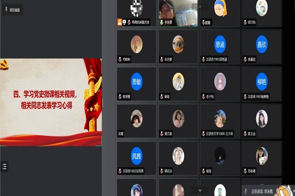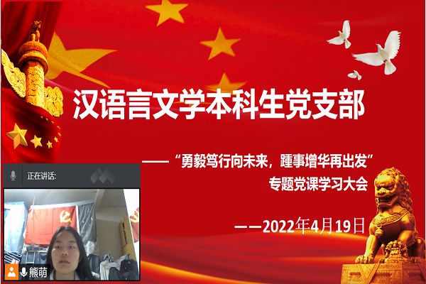 4月19日14:00,汉语言文学本科生党支部利用腾讯会议召开党课学习会议,会议由熊萌同志主持,会议主题是“勇毅笃行向未来,踵事增华再出发”——中国共产党人精神谱系主题学习。