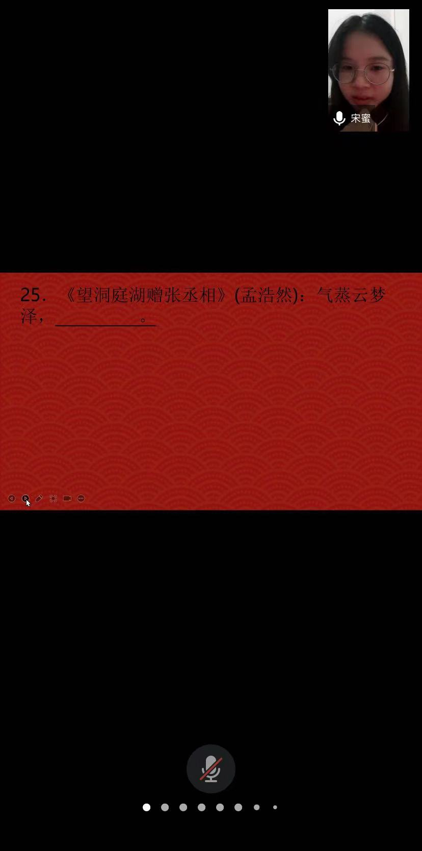 2021年10月8日,第七届中国诗词大会云顶国际vip8866选拔赛决赛暨研究生学术文化节圆满落幕。决赛采取线上方式,院党委副书记刘莎、院团委书记李敏及全体参赛选手参加。比赛分为诗句填空、名句找茬、宫格、飞花令四个环节。