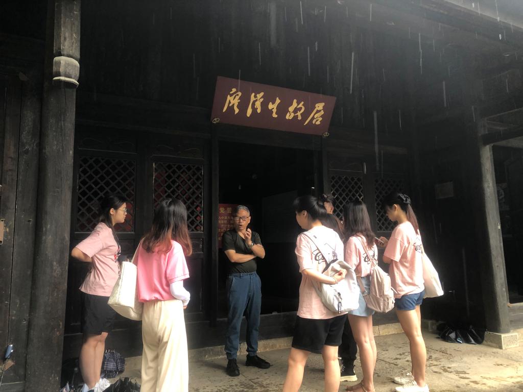 19日上午,实践团一行11人走进廖汉生故居,故居是清代保留下来的木质结构老房子,按照故居传统“老三样”布展,成松柳教授现场“变身”讲解员,带领大家回顾廖汉生的一生,讲述他从一个山寨“土伢子”成长为一名开国“将军”的光辉历程,以此激励学子坚定理想信念,砥砺前行。在白竹坪村中华苏维埃共和国六县联合政府旧址,随同的工作人员介绍旧址本是私人祖宅,当地的老百姓为支持贺龙革命,自发地将祖宅腾出来供贺龙部队办公和居住,还免费为红军提供食宿,无私奉献的白竹坪村民感动了在场所有人。距离六县联合政府不远处就是中共桑植第三届县委旧址,木屋简陋,风吹雨淋,而门房上还存留着“建立自己的苏维埃政府”、“要得安居乐业,必须拥护红军”等墨迹,与后面一座座精致崭新的别墅形成鲜明的对比。一个同学不禁感叹道:“这个地方竟然有这么多别墅,时代真的变了”。另一个同学说:“山村的面貌与村民的生活发生了翻天覆地变化,但是人们奋斗的初心永不变。”当天下午,实践团又到了芭茅溪盐税局,这是贺龙元帅“两把菜刀闹革命”的起始地。自从毛主席在三湾改编会议上用贺龙“两把菜刀闹革命”来鼓舞红军士气后,“两把菜刀”的故事从此传遍整个红军,成为新民主主义革命的经典传奇。实践团来到现场,随着讲解员深情的话语,重温了105年前发生的腥风血雨,感受了革命年代的艰辛,心中受到极大的震撼。