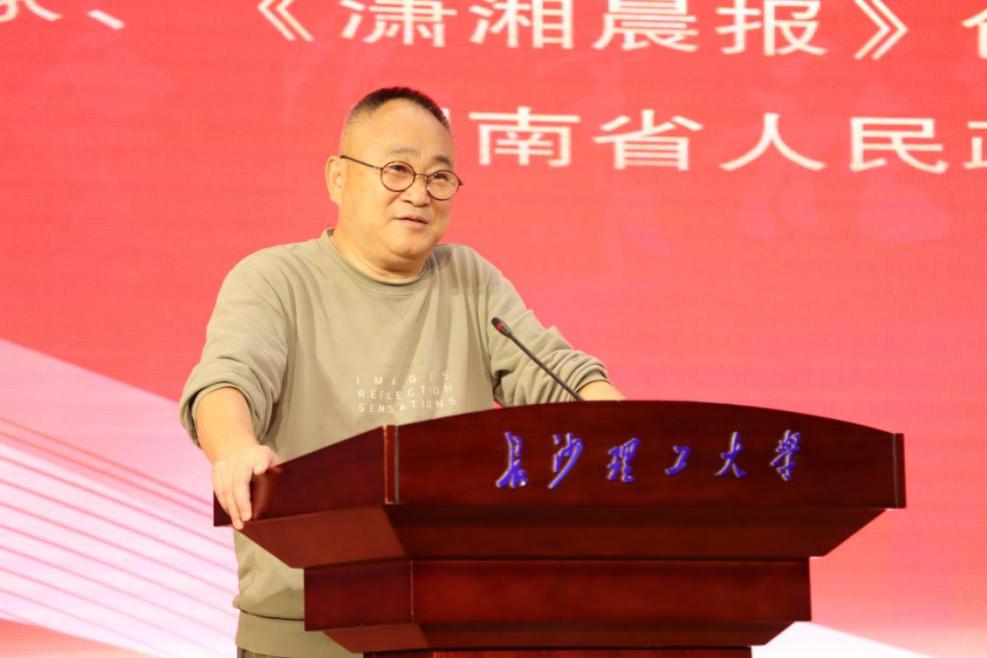 文新学院院长刘建新为本次活动致辞。他着重强调了书籍对于人思维开拓的重要性及学院对阅读推广的重视,特别是以“经典作品分享会”、“金岭读书会”、“中文岭上谈文学品评会”、”传媒绘世会”为代表的“四会”特色育人品牌,搭建起系统化、多维度、参与性强的阅读推广平台,推动阅读成为学生全面成长的重要支点。学院将持续推进“道器融通、赛创融汇、文工融合”的“三融”协同育人格局,将阅读作为核心力量贯穿通识教育和专业教学全过程,让书香润泽育人环境、厚植精神沃土。