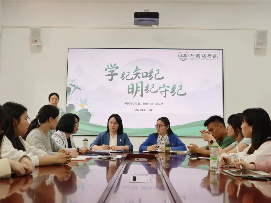 4月23日正值世界读书日,外国语学院以“学纪、知纪、明纪、守纪”为主题开展第二期师生读书分享会。学院联合教职工党支部与学生党支部共读新版《中国共产党纪律处分条例》,深入学习党纪党规,进一步强化师生党员的规矩意识,增强师生党员的政治敏锐性和政治鉴别力,推进全面从严治党。