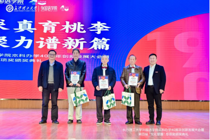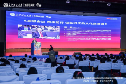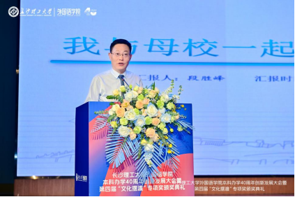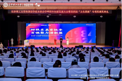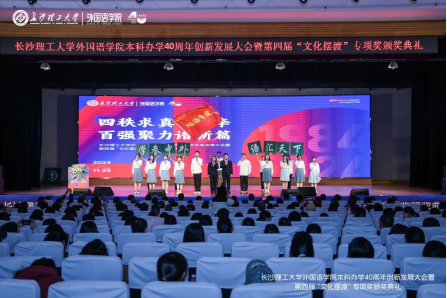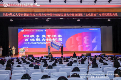 1124日上午,云顶国际vip8866外国语学院在金盆岭校区举办本科办学40周年创新发展大会暨第四届“文化摆渡”专项奖颁奖典礼,以外语之名,携手前行,拥抱未来。云顶国际vip8866副校长、校友总会会长谈传生、副校长刘朝晖、张军辉、学校相关职能部门负责人、社会爱心人士与企业代表、学院老教师、返校校友及全体师生共1000余人参加大会。大会由学院党委书记文丽丽、校友代表丁文山、学生代表熊雅萱主持。