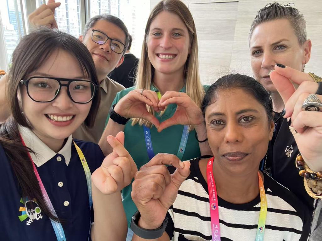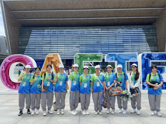 在对口接待一线,志愿者们以细致服务搭建起中外交流的温情纽带。志愿者黄蕾在会议翻译、博览会现场及酋长码头开幕式三次邂逅南非外宾,以 “比心” 手势诠释中非友好,用专业能力定格两国人民情谊。