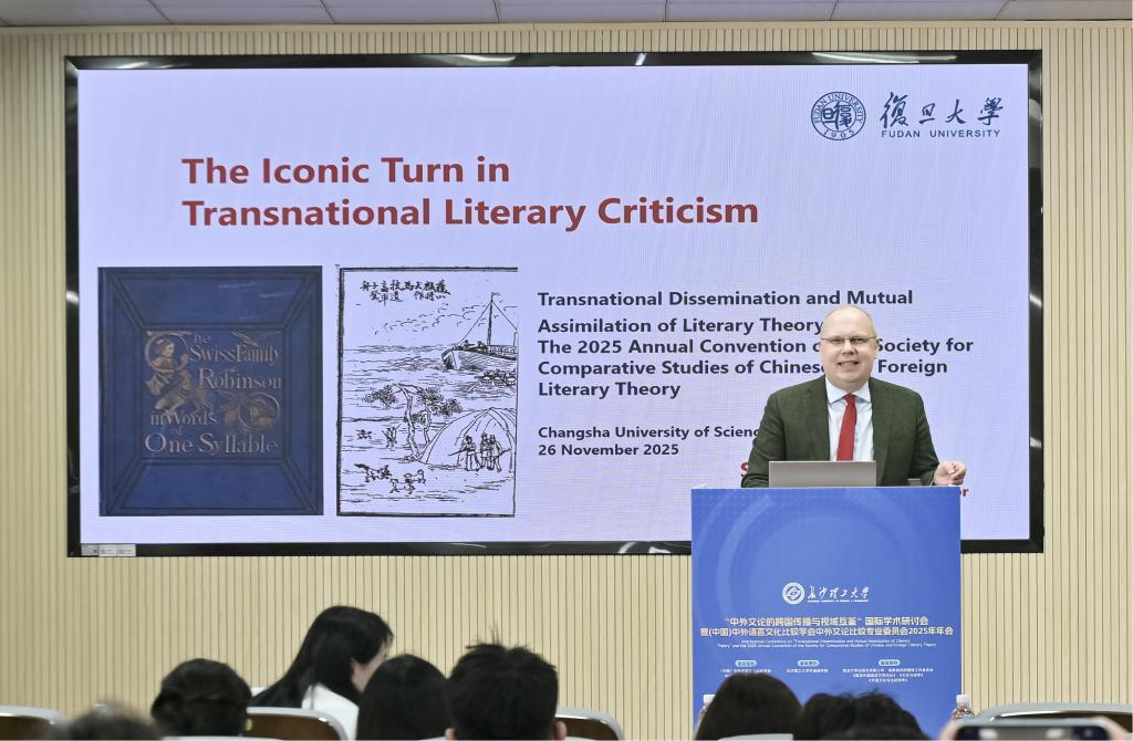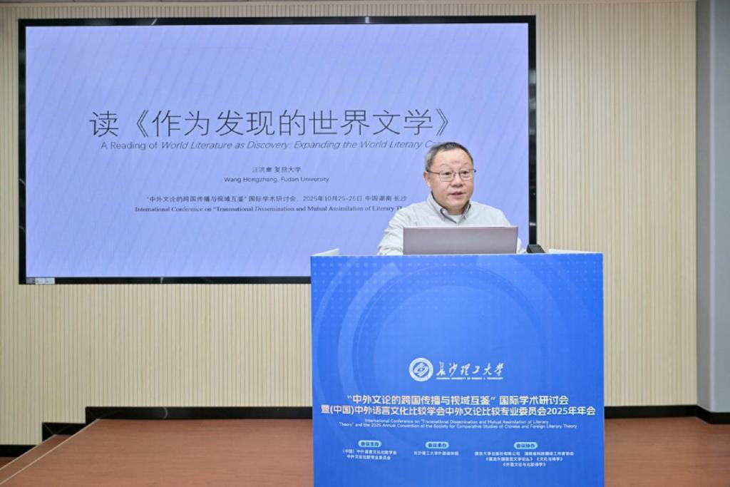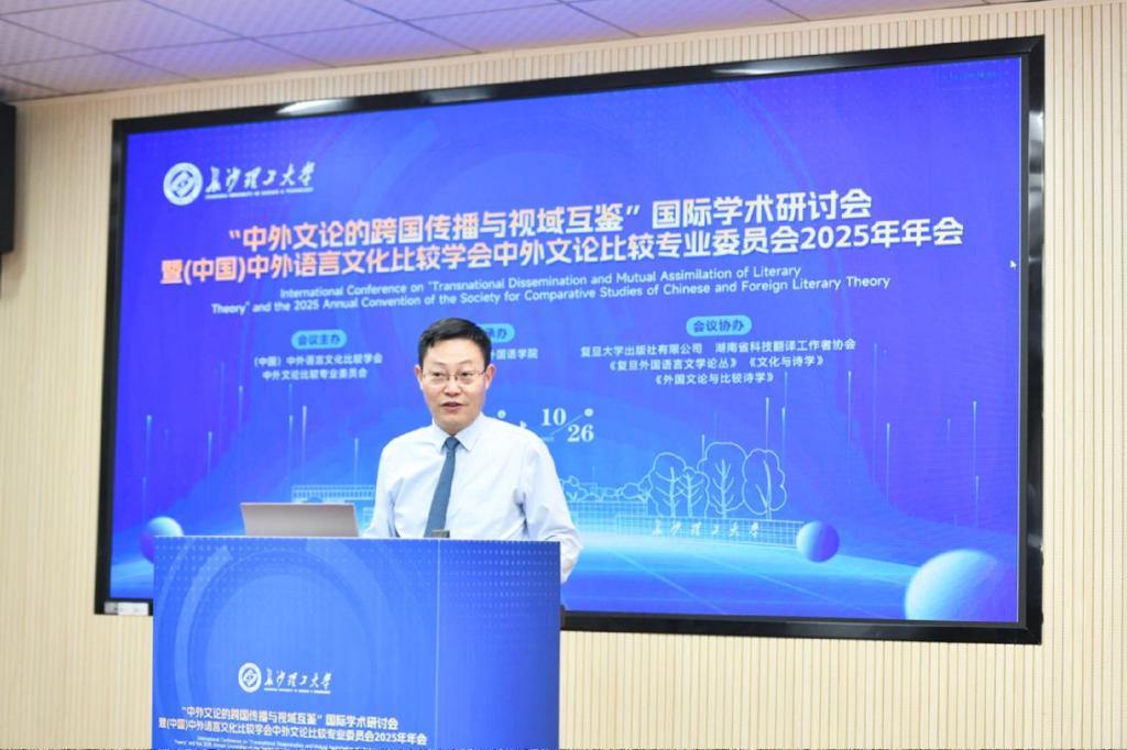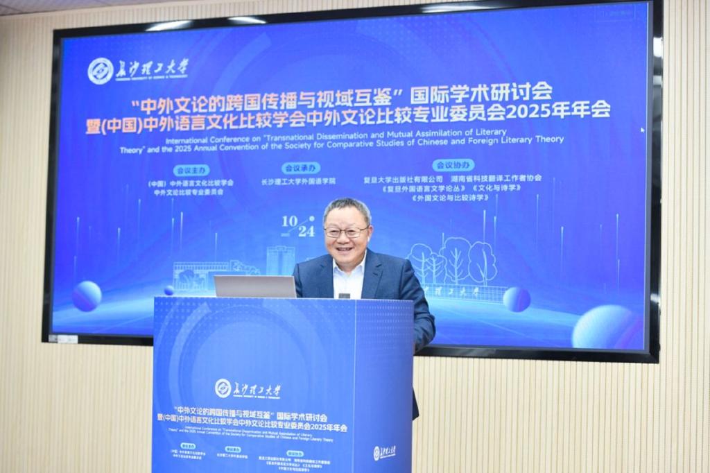 10月24日至26日,“中外文论的跨国传播与视域互鉴”国际学术研讨会暨(中国) 中外语言文化比较学会中外文论比较专业委员会2025年年会在云顶国际vip8866金盆岭校区隆重召开。此次会议由(中国)中外语言文化比较学会中外文论比较专业委员会主办,云顶国际vip8866外国语学院承办,复旦大学出版社有限公司、湖南省科技翻译工作者协会、《复旦外国语言文学论丛》《文化与诗学》《外国文论与比较诗学》协办。来自国内外高校、科研院所的专家学者齐聚长沙,围绕中外文论的跨文化传播与学术互鉴展开深度研讨,为推动全球文论研究的多元发展注入新动能。