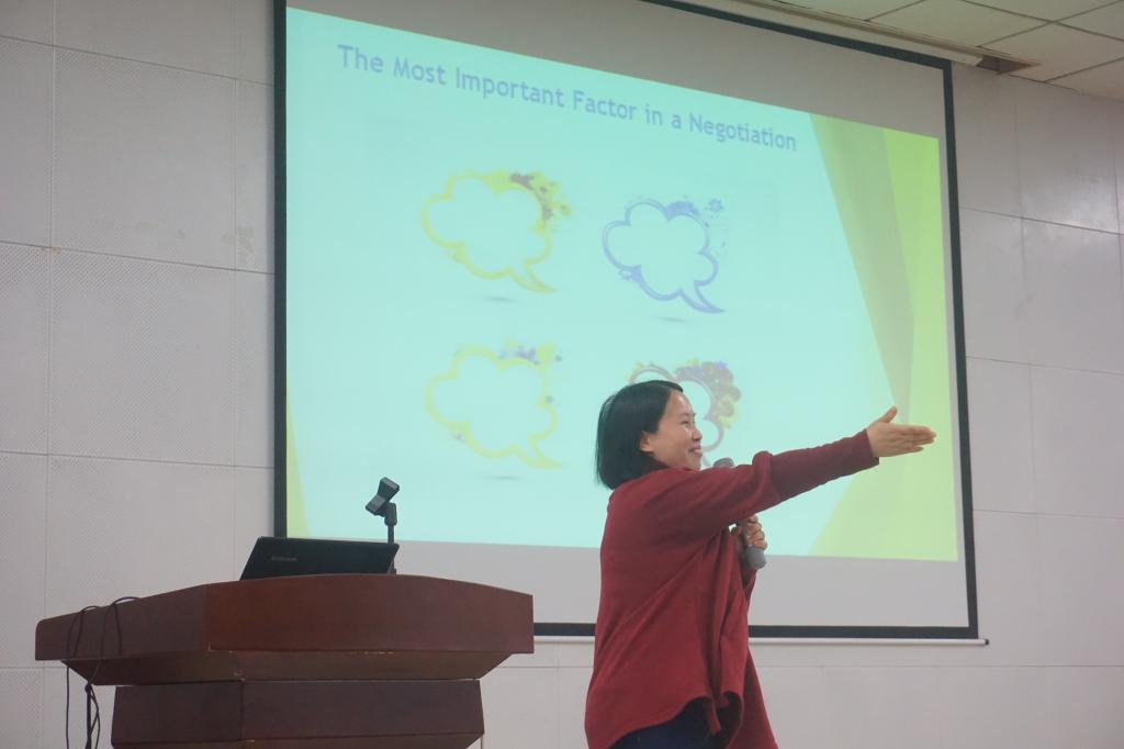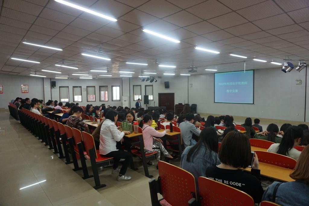 为进一步提高我院教师的教学积极性、创新性及教学能力, 4月10日,外国语学院2018年教师教学比赛在文科楼A100圆厅举行,来自学院3个系部的6位老师参加比赛,在三尺讲台展示育人风采。观摩此次比赛的有学院党政领导、全体教师及部分学生代表。圆厅座无虚席,气氛热烈。