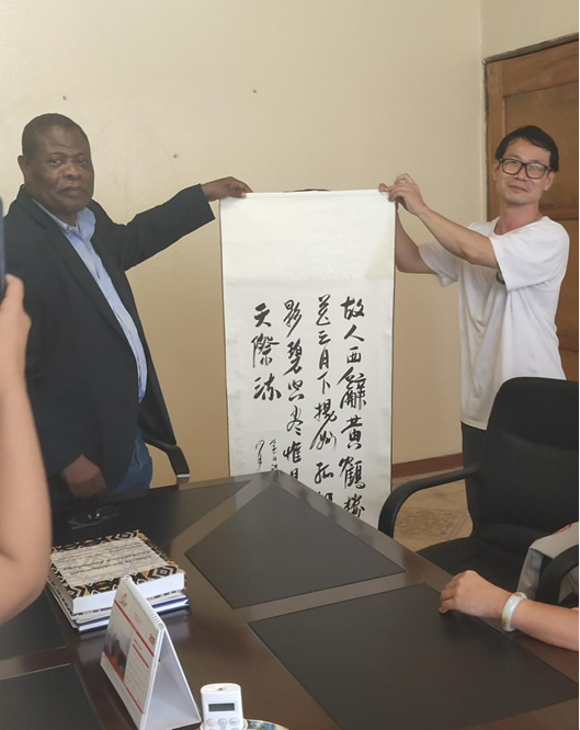 下午三点,塔布曼大学校长Elliott Wreh-Wilson兴致勃勃地出席了志愿者老师钟满红的汉语体验课。课后的图书捐赠仪式上,校长Elliott Wreh-Wilson说要把图书收藏在学校图书馆,让更多的同学们能了解中国文化,了解中国先进的工程技术。最后,校长Elliott Wreh-Wilson在其办公室接待了中方人员一行,他表示,希望能在塔布曼大学更多地开展中非文化交流活动,让中非友谊长青。