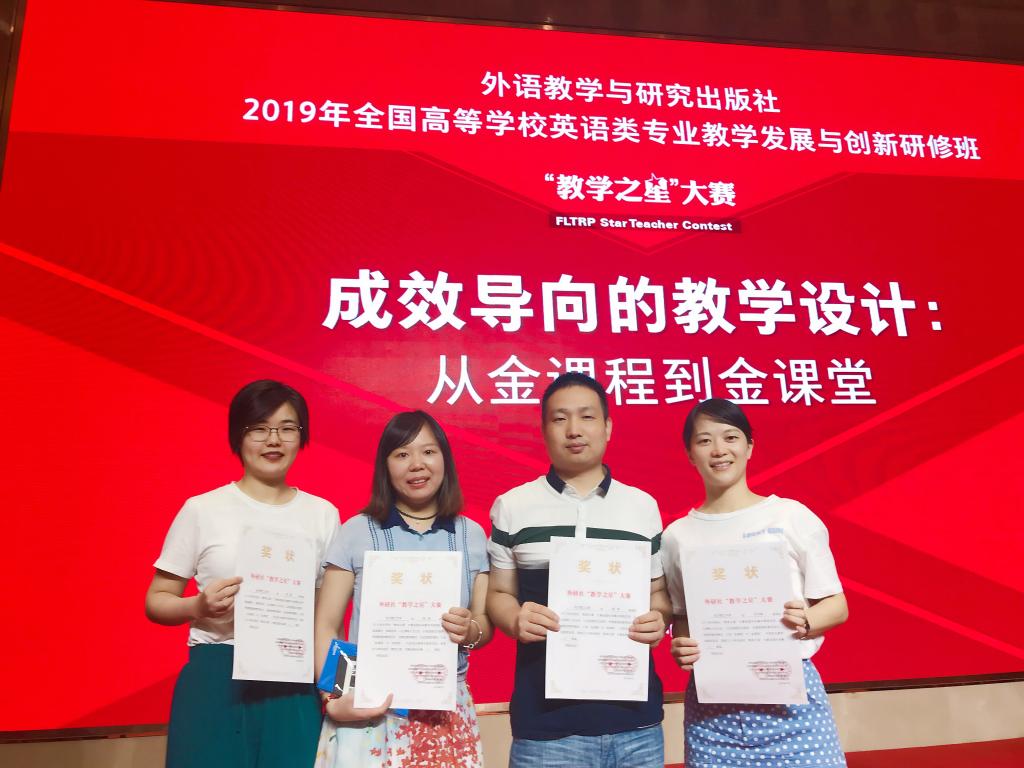 8月1--2日,外语教学与研究出版社2019年“教学之星”大赛全国半决赛在武汉成功举办。近700位高校英语类专业教师齐聚一堂,或参赛,或观摩,或研讨。我院外国语言文学系姚尧、毛岚、孙文娟、胡伟组成的团队作为湖南省的唯一代表,参加了这次全国级的角逐,并努力拼搏,荣获全国半决赛二等奖。