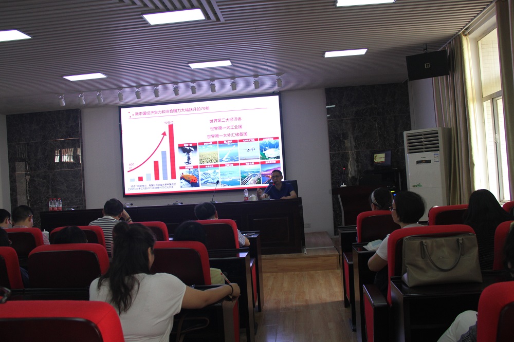 9月24日上午,外国语学院与物电学院师生在理科楼B413报告厅共同听取了庆祝中华人民共和国成立70周年主题宣讲会。宣讲会由杨伟军副校长主讲。