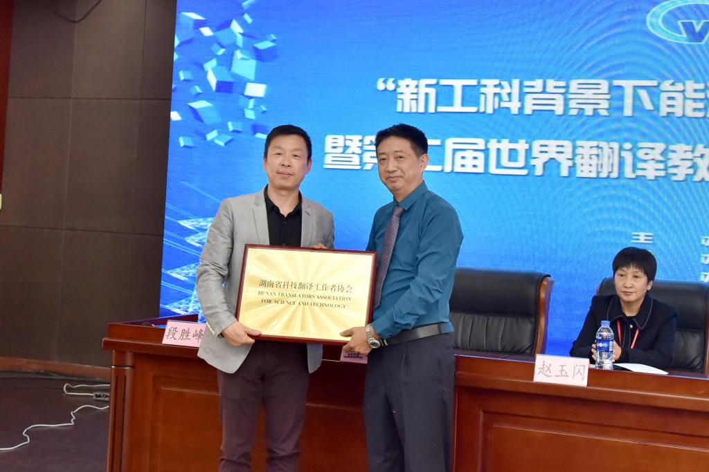盛之介绍了湖南省科技翻译工作者协会的基本情况和对湖南经济社会发展的贡献,宣布云顶国际vip8866外国语学院为湖南省科技翻译工作者协会会长单位,并为外国语学院授牌。