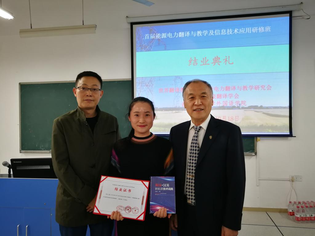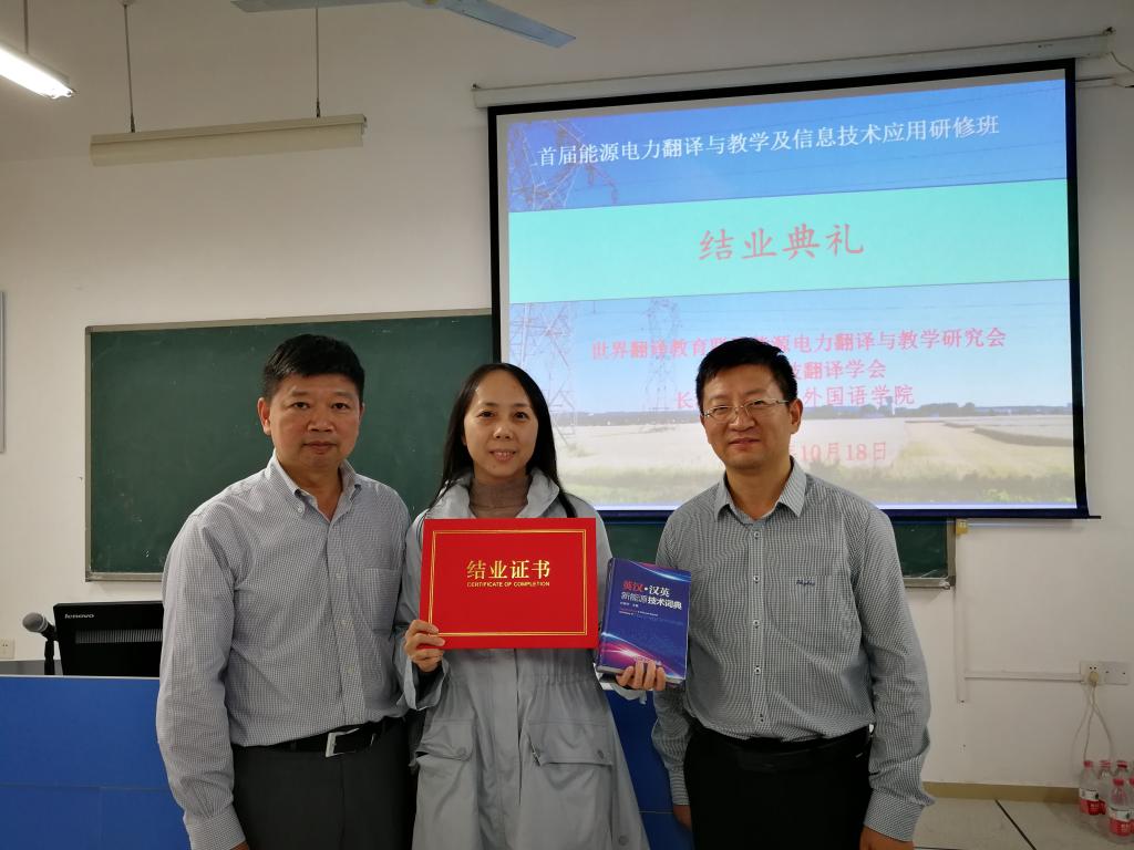 短短两天研修班课程结束后,学员纷纷表示学有所得,学有所成,一致认为此次研修班将有助于促进学员能源电力翻译教学创新,推动能源电力翻译行业改革并锐意学习和接受新的翻译模式。研修班承办方云顶国际vip8866外国语学院院长段胜峰教授为三位主讲教师颁发了聘书,并和三位主讲教师一起为学员颁发了结业证书。