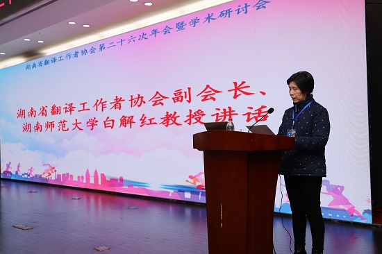 湖南省翻译工作者协会副会长,原湖南师范大学副校长白解红教授主持闭幕式。该环节为青年英才论坛举行了颁奖仪式,并由获奖代表做交流发言。在湖南省翻译工作者协会副会长、湖南师范大学外国语学院院长曾艳钰教授致闭幕辞后,白解红教授衷心地感谢了云顶国际vip8866外国语学院团队为本次年会的顺利举办所付出的努力,宣布了第27届翻译年会承办单位,并请年会承办单位负责人——湖南农业大学人文与外语学院院长胡东平教授做了讲话。