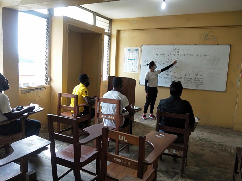 尽管疫情还在,根据利比里亚大学教学安排,孔子学院克服重重困难,经过一周多时间选课,在取消新生集体开学典礼情况下,本学期线下汉语课程于3月8日正式开启。由于当地网络费用成本高、运行不稳定,本学期所有汉语课程均改用线下面授教学。为满足多元化语言学习需要,降低学习成本,利大孔院还结合当地需求,每周六开设“空中汉语”广播课程。