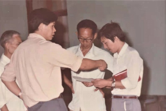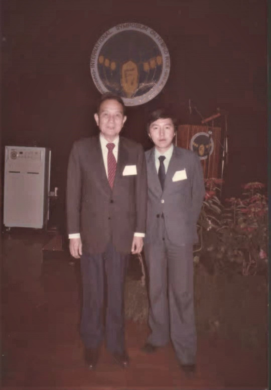 (1986年10月与前来参会的菲律宾农业部副部长、国际水稻研究所副所长在会上合影)