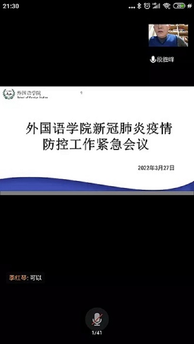 最后段胜峰感谢学院师生为配合学校疫情防控、校园安全做出的积极配合和理解,希望大家继续做好个人防护,落实学校各项防控措施,坚定信心、众志成城、打赢这场疫情防控阻击战。