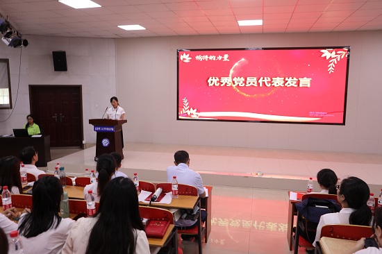 优秀党员代表李巍、王浩萍、王爱华、 陈熠等四人先后发言,汇报了个人先进事迹,赢得了阵阵掌声。