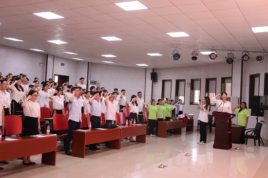 优秀党员陈润兰同志带领全体党员同志向党旗宣誓,重温入党誓词。