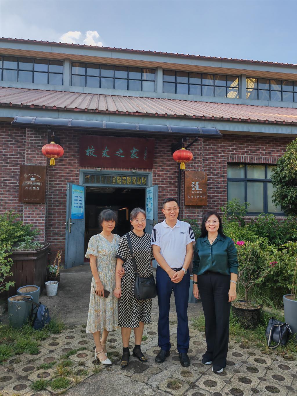 座谈会后,同为外语系89级校友的外国语学院院长段胜峰陪同龙小艾一行漫步金盆岭校区校园。龙小艾不禁回忆起在母校求学时的情景,在当时比较艰苦的条件下,她和外语系的同学们一同挥洒青春、追逐梦想。