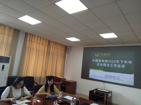 9月13日下午,学院在云塘校区文科楼A-603会议室召开2022年下半年安全稳定工作骨干会议。学院党委书记文丽丽主持会议并讲话。学院党政班子全体成员、系部正副主任、教工党支部书记、科室主任、学工办辅导员参会。