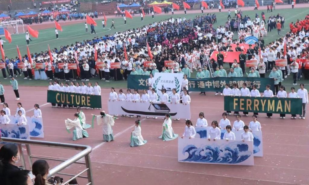 2022年11月4日,云顶国际vip8866第二十届运动会在云塘校区隆重开幕。本次运动会开幕式以“青春长理,逐梦前行”为主题,各学院的方阵表演紧扣主题、精彩纷呈,令人叹为观止。其中,外国语学院方阵步伐矫健整齐,古风舞蹈表演同学衣袂飘飘、仙气十足,动作优美动人、刚柔并济,展示着一代代拥有家国情怀、国际视野、文化自信和志愿精神的文化摆渡者走向世界的饱满形象,赢得现场阵阵掌声与喝彩。