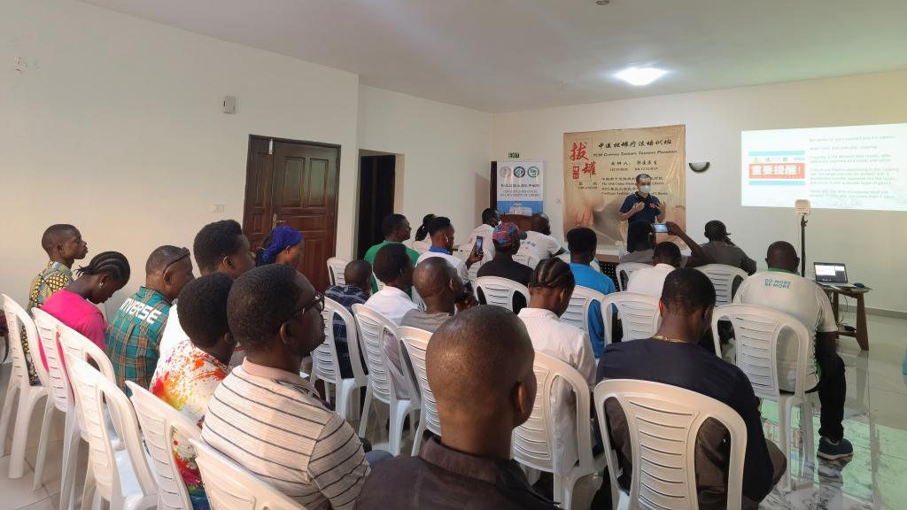 当地时间2022年11月12日,利比里亚大学孔子学院与第15批援利医疗队在孔院驻地多媒体功能厅联合举办的中医拔罐疗法培训班成功开班。利大孔院全体教师及慕名报名学习中医拔罐技术的孔院学生共四十余人参加了首次培训活动。