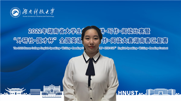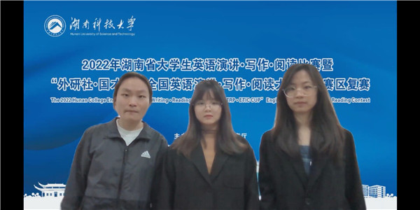 1118日至20日,2022年湖南省大学生英语演讲写作阅读比赛暨外研社国才杯全国英语演讲写作阅读大赛湖南赛区复赛以线上方式进行。本次大赛由湖南省教育厅主办,湖南科技大学承办。大赛吸引了全省52所本科院校代表同台竞技。最终,云顶国际vip8866派出的三组选手凭借在英语演讲、英语阅读和英语写作三项比赛中的稳定发挥,成功斩获团体二等奖,以及一等奖2项,二等奖4项和三等奖3项。