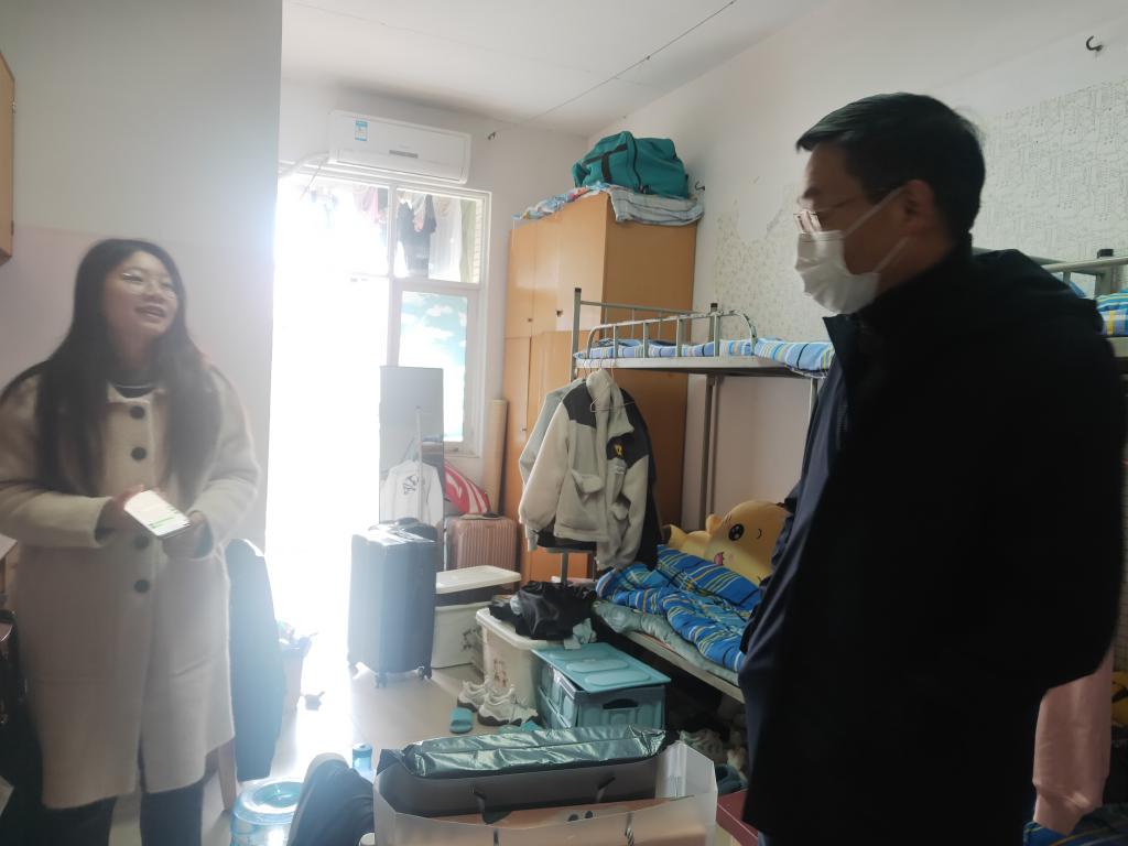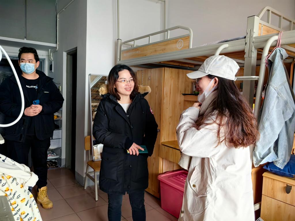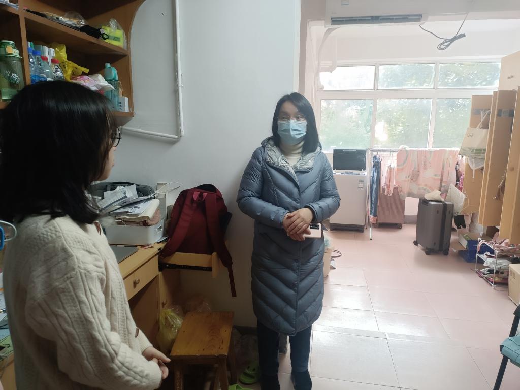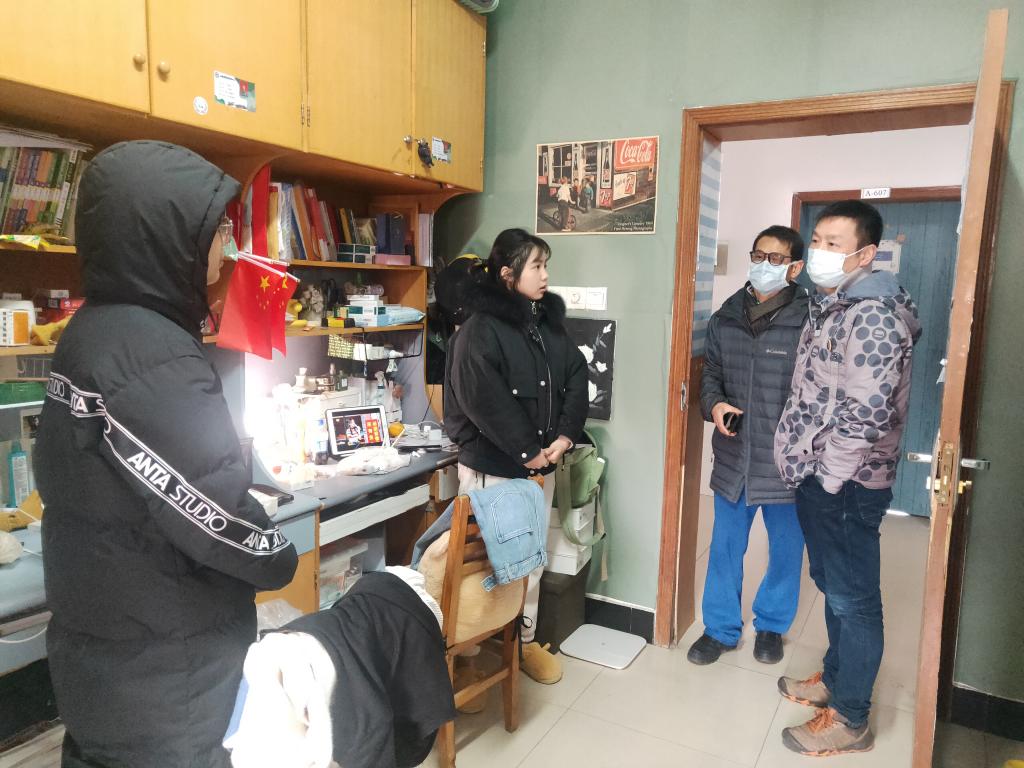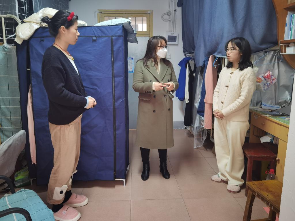 走访过程中,老师们亲切地对同学们进行了慰问,向学生们普及疫情防控知识,叮嘱同学们严格遵守疫情防控期间学校的各项管理规定,做好个人防护,保持良好宿舍卫生。老师们亲切地向同学们询问目前学习、生活的情况,向同学们转达了学院对大家的关心与问候。希望同学们能继续做好科学防护,增强卫生健康意识,适量运动、规律作息,注重个人和寝室卫生。