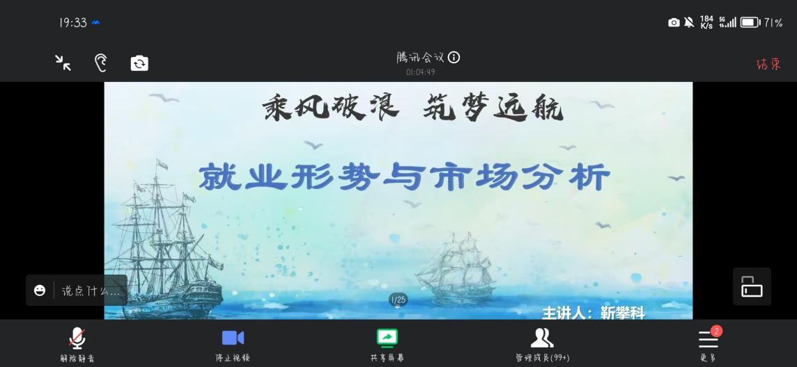 周芳以“和孩子共奋斗”为题向会场133名家长先后分享了19级毕业生们四年来在校的生活环境和优秀表现、学生考研和就业的实际情况、就业面试技巧和着装要求等,建议家长们积极挖掘资源,进行家校联动,共同帮助学生顺利就业,探索人生更多的可能。