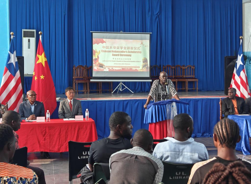 当地时间2023年11月28日,中国驻利使馆在利比里亚大学国会山校区大礼堂为131名利比里亚的大学生颁发了2023年“中国大使奖学金”,其中利比里亚大学孔子学院有12名学生获此奖项。中国驻利大使尹承武及随行人员、获得奖项的各高校校长或副校长、大使奖学金获得者、利大孔院全体教职员工及部分学生、利大学生代表等百余人参加颁奖仪式。