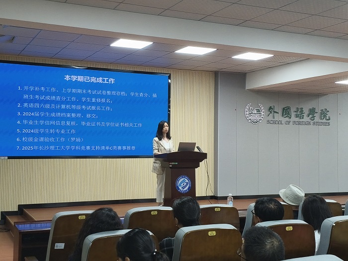 党委委员陈菁报告了本学期教学管理、学科竞赛、人才培养方案修订等工作进展,部署了后半学期考试组织、毕业论文答辩、专业建设、课程建设等重点任务。