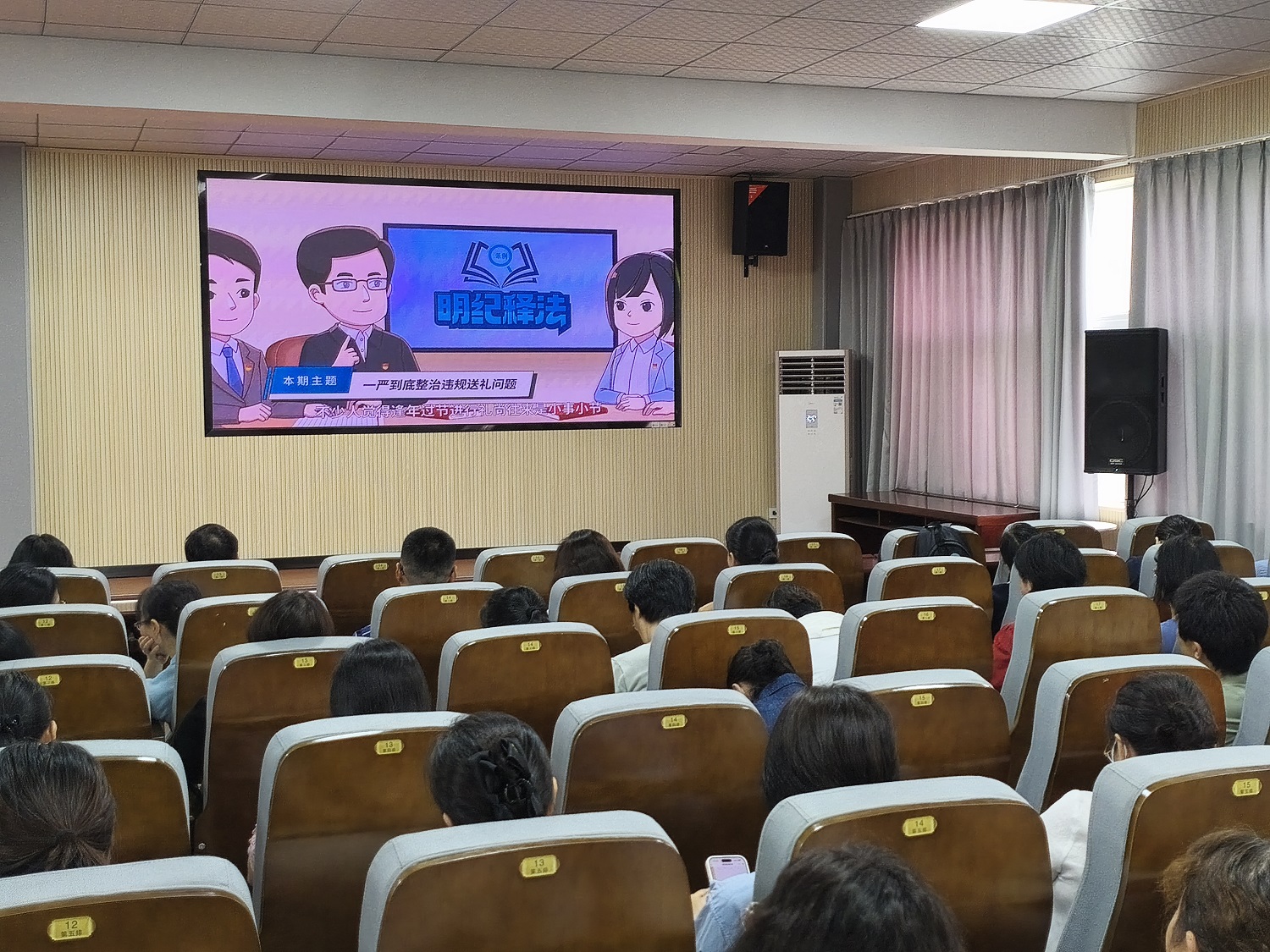 大会伊始,全体教职工集中观看了“明纪释法”廉政建设教育片《一严到底整治违规送礼问题》。影片通过生动的动画案例,深入剖析了节假日期间违规收送礼品礼金等“四风”问题的表现形式与危害,强调作风建设的重要性与长期性,引导全体党员干部和教职工筑牢廉洁自律思想防线。