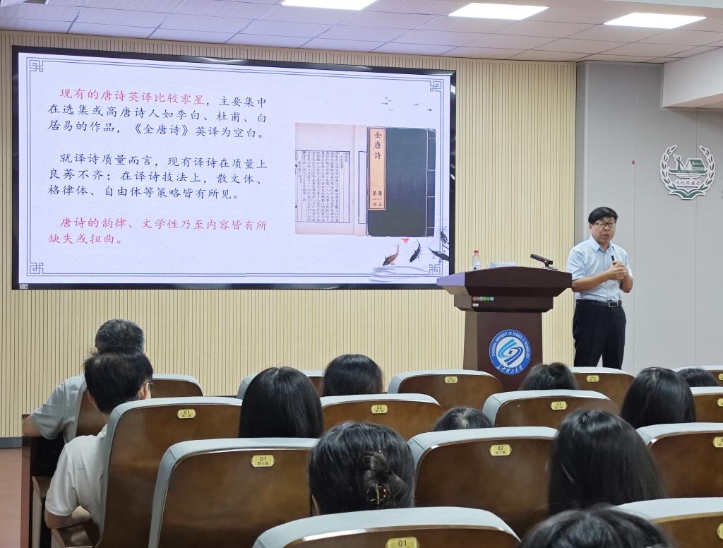 9月29日下午4点,云顶国际vip8866外国语学院特邀上海大学赵彦春教授于金盆岭校区3教321报告厅为师生开展学术讲座,主题为“《全唐诗》英译原则与方法”。此次讲座由刘彬副院长主持,段胜峰院长、学院科研骨干、研究生等百余名师生参加。