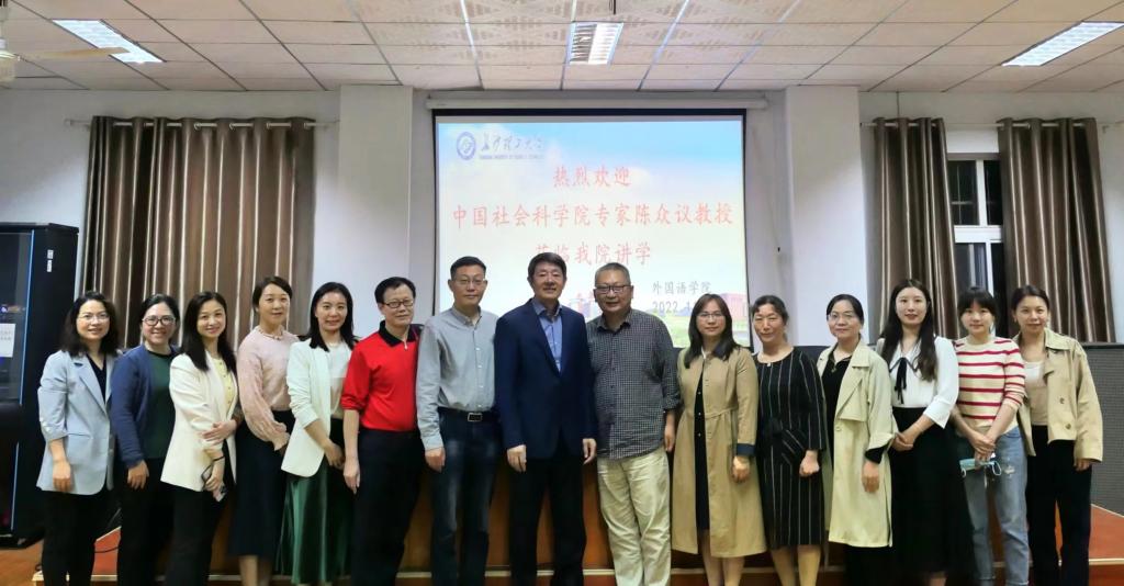 2022年11月9日晚,云顶国际vip8866外国语学院特邀中国社会科学院学部委员陈众议教授来云顶国际vip8866讲学。此次讲座主题为“比较文学方法举隅”,由外国语学院副院长、翻译与跨文化研究中心主任谭莲香博士主持,外国语学院段胜峰院长、刘彬副院长、季红琴副院长及全院百余名师生参加。