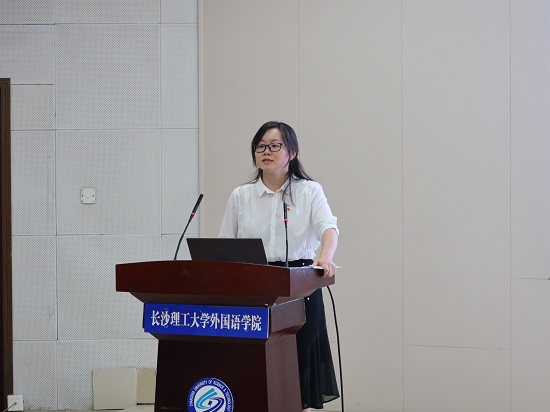 第五环节,段胜峰作主题教育调研汇报,他讲述从6月15日至20日,学院领导率队就外语学科人才培养、工程英语学科建设发展、学生就业创业等问题赴重庆、四川、广东开展调研,先后调研了重庆交通大学、西南交通大学、广州狮子会、广州广高高压电器有限公司、佛山市恒力泰机械有限公司、奇拓集团、佛山外贸网商协会、广州梓柏印刷有限公司等。他从调研过程与案例、结果分析、办学定位与特色、工作交流等四方面进行汇报。他指出,学院班子通过外出调研,深入了解几所高校的整体状况,分析并总结它们的优势和短板,在此基础上,精准定位学院的发展方向和着力点。同时也了解外贸企业发展情况和用人需求,探讨院企合作模式,共同促进学生的实习就业和教学改革创新。