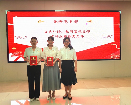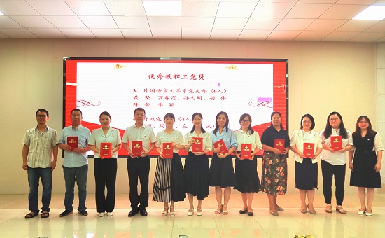 第二个环节,由学院党委副书记周芳宣读表彰决定,陈一婧等22名教职工党员和刘乐冰等19名学生党员获评学院“优秀共产党员”称号、龙晓翔等11人获评学院“优秀党务工作者”、公共外语二教研室党支部等2个党支部获评学院“先进党支部”。