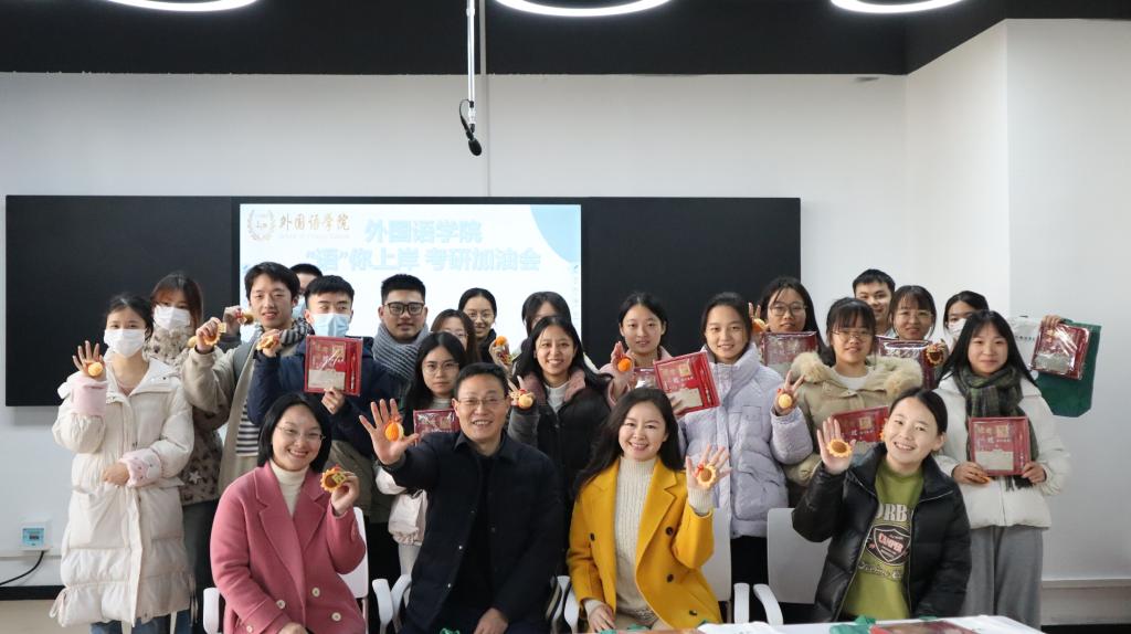 12月12日中午13:30,云顶国际vip8866外国语学院“语”你上岸20级考研加油会在金盆岭三号教学楼416举办,学院党委书记文丽丽、院长段胜峰、党委副书记周芳和全体辅导员出席会议,一同为到场的考研学子送上了精心准备的考研加油礼包,代表学院最温暖的鼓励和诚挚的祝福。院长段胜峰在致辞中鼓励学子保持积极向上的精气神、勇往直前,“上岸”理想院校。