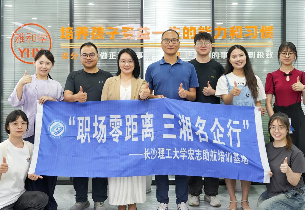6月27日上午,外国语学院党委副书记周芳和学工办主任武巧琳带领学生代表前往长沙雅和学教育科技有限公司,开展了“职场零距离 三湘名企行”交流活动,旨在助力学生了解真实就业环境并开拓就业实习市场。