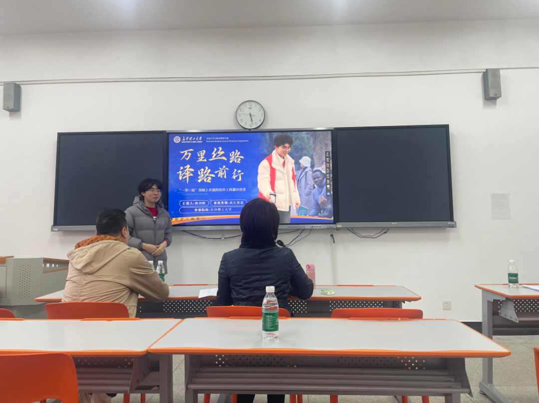 上午,费佳颖从用人单位的角度,对赖剑腾同学的职业规划路径进行了现实校验和优化。她结合“一带一路”沿线国家工程项目实际,就翻译人才所需具备的不仅限于语言的复合型能力结构——如工程基础知识、跨文化沟通能力、安全与环境适应力等——进行了细致剖析,并对其参赛材料中如何更具象、更生动地展现这一特色职业愿景提供了关键性建议,使其职业规划更加贴合国家战略需求与行业发展前沿。