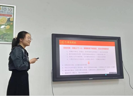 在总结点评环节,毛婕老师指出各班班级展示总体良好,但班级特色不够明显,竞争力不强等问题,希望各班班长今后可以更多地向校级优秀班集体学习,积极打造班级特色优势。