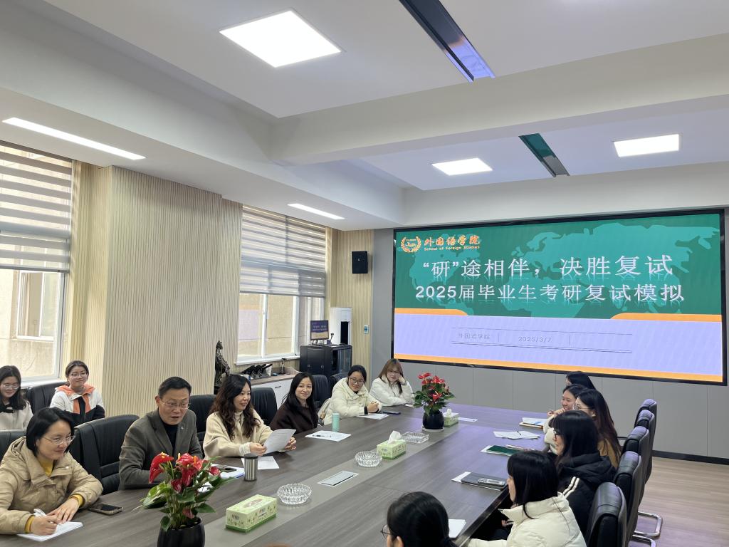 为帮助考研学子更好地备战复试,提升面试技巧和综合能力,外国语学院于2025年3月7日下午开展了“‘研’途相伴,决胜复试”考研复试指导活动。本次活动包括“一对一”全真模拟面试、学术简历指导、口语发音训练、复试观摩等环节,吸引了考研学子积极参与。